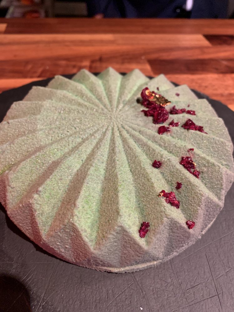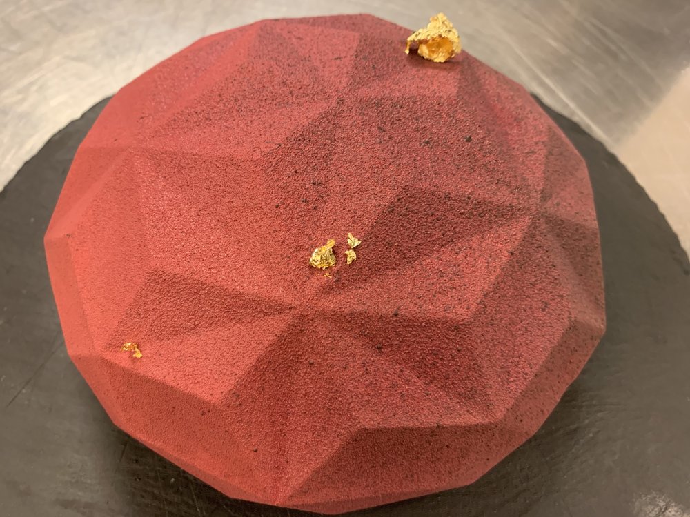 A pistachio-packed cake with all of the show stopping ingredients of our Pistachio Individual dessert. A Sicilian pistachio mousse, pistachio praline, raspberry compote, and labneh cream all atop a poppy seed-pistachio biscuit crunch base that brings salty hints and sweetness.