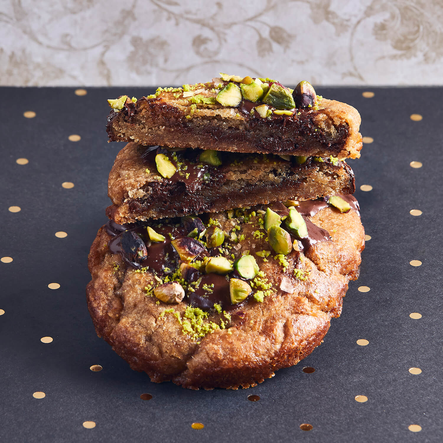 A delightful and decadent chocolate chip cookie that’s crunchy, chewy, and totally vegan. loaded with chocolate chips and toped with pistachios.